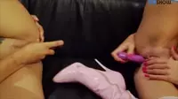 In a darkened room, the voluptuous brunette lay entwined with her blonde lover, their passionate embrace setting the stage for a night of unbridled sensuality.The scent of perfume lingered in the air as the two women began to explore each other's bodies, their fingers tracing intricate patterns on skin made moist by anticipation.As the room grew hotter with every stroke, it became clear that their mutual hunger could no longer be contained.The brunette took charge, guiding her lover's eager mouth down onto her sensitive clit, creating a symphony of groans and sighs that echoed through the shadows.Their tongues intertwined in an intimate dance as the blonde reveled in the taste of the other woman, her own desire growing ever more potent with every lick and suckle.The brunette could not help but arch her back and press herself against the blonde's face, aching for more intimate contact.Soon, their breath coming in heavy pants, they turned their attention to each other's perennial source of pleasure.The brunette teased the blonde's swollen clit with light touches, while the blonde's fingers delved deep within her lover's steaming core.Their bodies glistened with sweat and desire as they sought to satisfy every last inch of their insatiable hunger.With each tantalizing touch, it seemed their love-fueled frenzy only grew more intense.The brunette reached for a vibrant pink dildo that lay nearby on the bed, eagerly offering it to her blonde lover as an instrument for mutual pleasure.She inserted it into herself while the blonde worked its silicone shaft in and out, creating a harmony of carnal rhythms.Soon, they moved onto rimming, with the brunette lowering her face between the blonde's thighs and lavishing kisses upon her quivering ass.The taste of the other woman, coupled with their deepening connection, pushed both women to the edge of ecstasy.Their desire for one another had become an insatiable flame that could only be satiated through raw, animalistic pleasure.As they continued to explore every inch of each other's bodies, it was clear their climaxes would not come from a simple fingering or licking alone.They exchanged heated glances before both wordlessly agreeing on the need for more intensity in their lovemaking.With a fervent passion, the blonde found herself beneath her lover, who straddled her waist and impaled herself upon the dildo once again, this time riding it with wild abandon.The brunette clawed at her lover's body, desperate to pull her ever closer as the tension continued to build between them.As both women reached their peak, a fervent release overtook them, unleashing a torrent of ecstasy that washed over them like a tidal wave.The room fell silent, save for the soft moans and gasps of the two lovers as they floated in the aftermath of their orgasms.With bodies slicked in sweat, their breathing slowing to a gentle cadence, the brunette and blonde basked in the warm embrace of post-coital bliss, their hearts filled with love for one another.This was the type of passion that defied description, for it was a story that had no end, only beginnings - each new exploration leading to a deeper understanding of themselves and each other.With eyes locked in mutual understanding, they promised to cherish this moment forever, and embolded by their lust for one another, sought to explore every facet of their lovemaking, knowing full well that they were but the tip of a glorious iceberg waiting to be explored.
