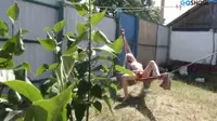 In a sunlit outdoor paradise, our stunning blonde protagonist lays down on her hammock, allowing the gentle breeze to brush against her sunkissed skin as she slowly drifts off into an intimate fantasy world.The warmth of the golden sunlight radiates upon her alluring figure, accentuating the curve of her breasts and the softness of her stomach, drawing attention to the promise of unspoken desires hidden beneath the thin fabric of her bikini bottom.As her thoughts wander into a realm of blissful pleasure, she envisions herself in this outdoor oasis, feeling the vibrations of nature resonating throughout her entire body.Her fingers graze across her blonde locks as her lips whisper sweet nothings to herself, knowing that it is just the beginning of an erotically charged adventure.Feeling a sudden rush of passion within her, she shifts her attention to the area between her legs and begins a sensual selfexploration that has been long overdue.Her hands glide effortlessly against the sensitive skin, bringing forth an array of unyielding sensations.The hammock sways gently with every subtle movement, intensifying the experience as she grows closer to her climax.Her arousal heightens, the sun now radiating with a more intense heat, reflecting off the beads of perspiration forming upon her forehead and glistening across her quivering cunt lips.As she focuses solely on herself in this moment of blissful masturbation, she imagines her lover approaching her from behind, their hands firmly grasping her waist as they join her in the shared experience.Their warm breath brushes against the nape of her neck, heightening the anticipation and leaving no room for hesitation or doubt.As one hand continues to pleasure herself with a sense of urgency, she finds herself craving for more their lips now meeting hers, sharing an intense connection that transcends mere physical pleasure.Her climax arrives swiftly as a fiery explosion of erotic sensations courses through her entire being, leaving her breathless and utterly satisfied in this moment of outdoor bliss.The hammock sways gently back and forth as she slowly comes down from the peaks of her desires, cherishing every last trace of afterglow left behind by the fantasy that was once but a tantalizingly real memory.